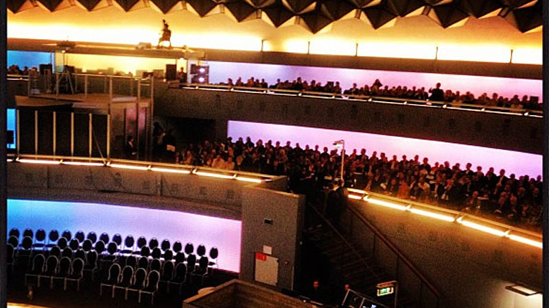 With the 8.1-channel sound system, we can live change the acoustics of the space. It's shifting direction, and scale. Collider can literally follow the sound and visualize its position. This is because the image projection is directly linked to the position and movement of the sound in space. Collider is more than an audio-visual experience in itself, it's also an ongoing research into the limits of our perception. Seeing sounds and hearing images.
